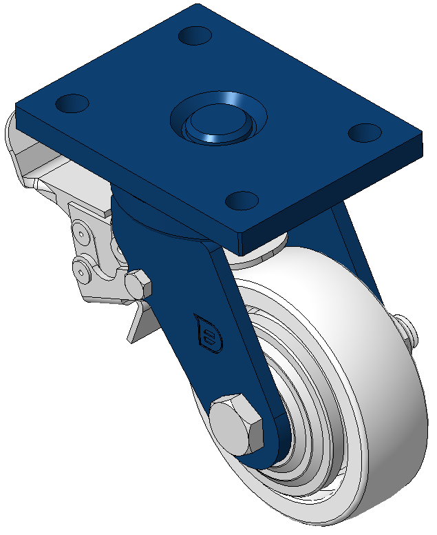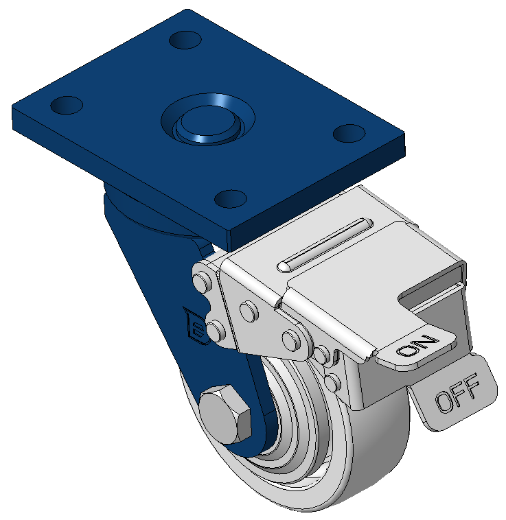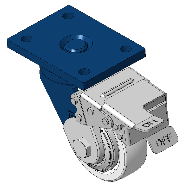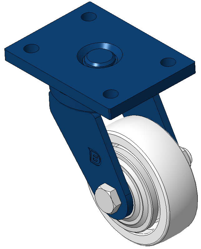 表面喷蓝漆,底板式安装装置,孔距90x60 聚丙烯轮芯、轮面,本色 轮子轴承—精密滚珠。 |