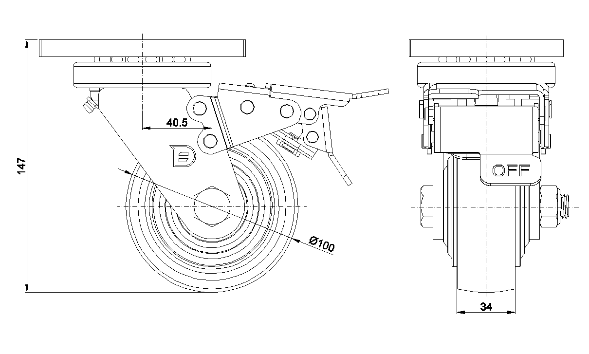 | QPU轮(褐弧) 轮径 × 轮宽 100 x 34mm |