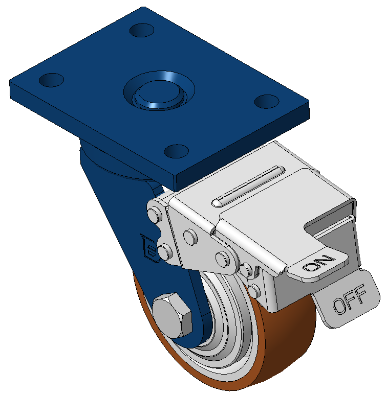 表面喷蓝漆,底板式安装装置,孔距90x60 铸铁制轮芯,高质量聚氨酯轮面 铣褐色,轮子轴承—精密滚珠 |