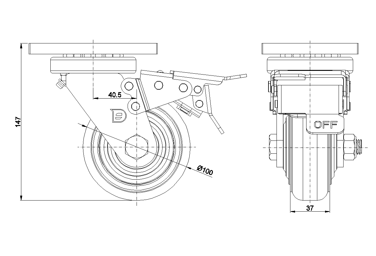 公制 英制 轮径 100mm 轮宽 37mm |