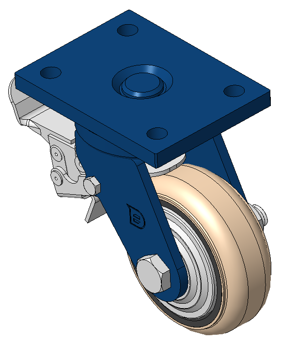 表面喷蓝漆,底板式安装装置 铸铁制轮芯,高品质高弹性橡胶轮面 铣黑色,轮子轴承—精密滚珠 |