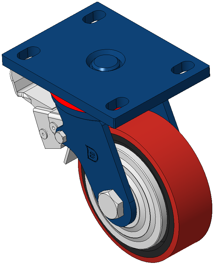 表面喷蓝漆,底板式安装装置,配特制防缠绕轮盖 铸铁制轮芯,高质量聚氨酯轮面 铣褐红色,轮子轴承—精密滚珠 |