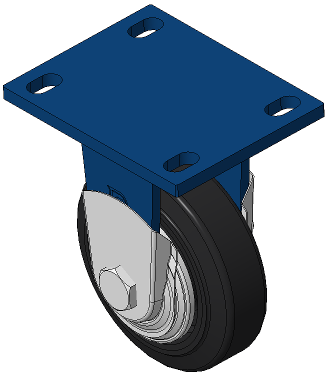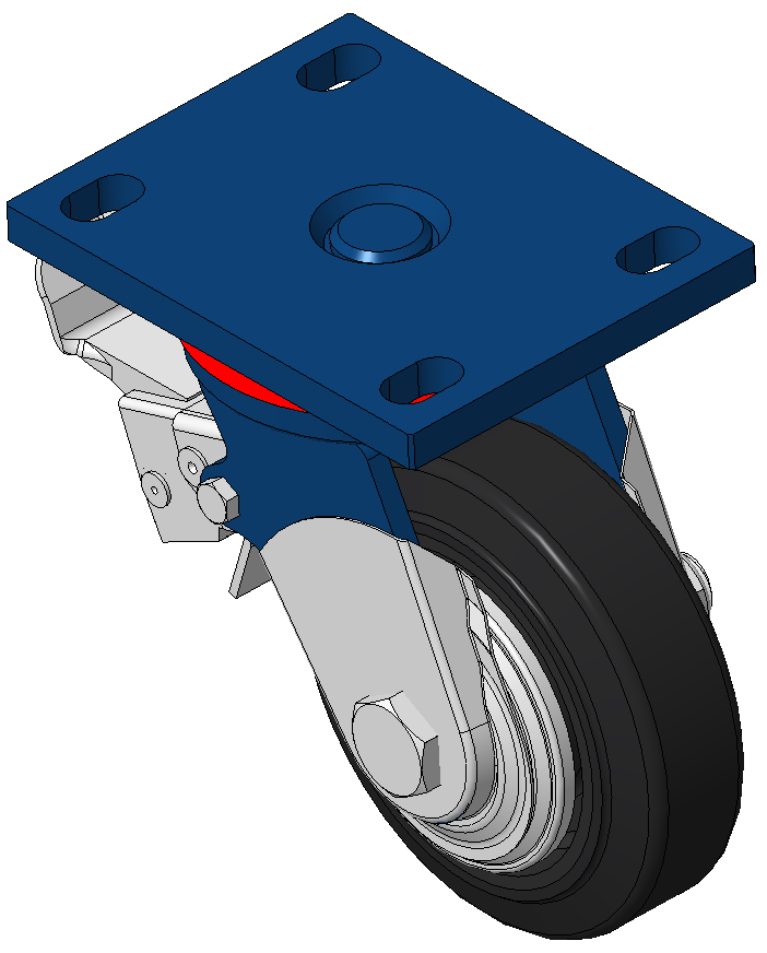 表面喷蓝漆,底板式安装装置 铸铁制轮芯,高品质高弹性橡胶轮面 铣黑色,轮子轴承—精密滚珠 |