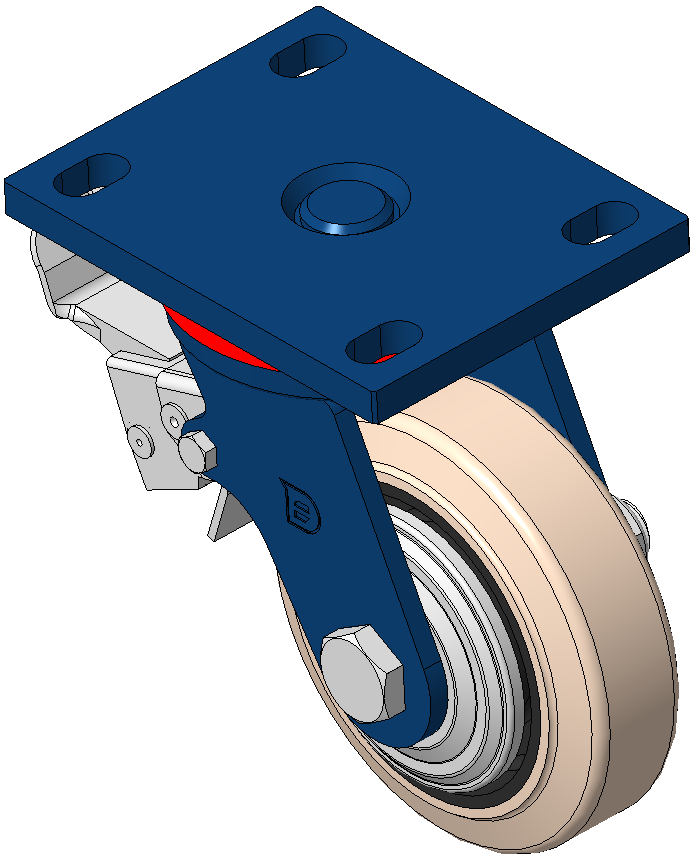 表面喷蓝漆,底板式安装装置 铸铁制轮芯,高品质高弹性橡胶轮面 铣原色,轮子轴承—精密滚珠 |