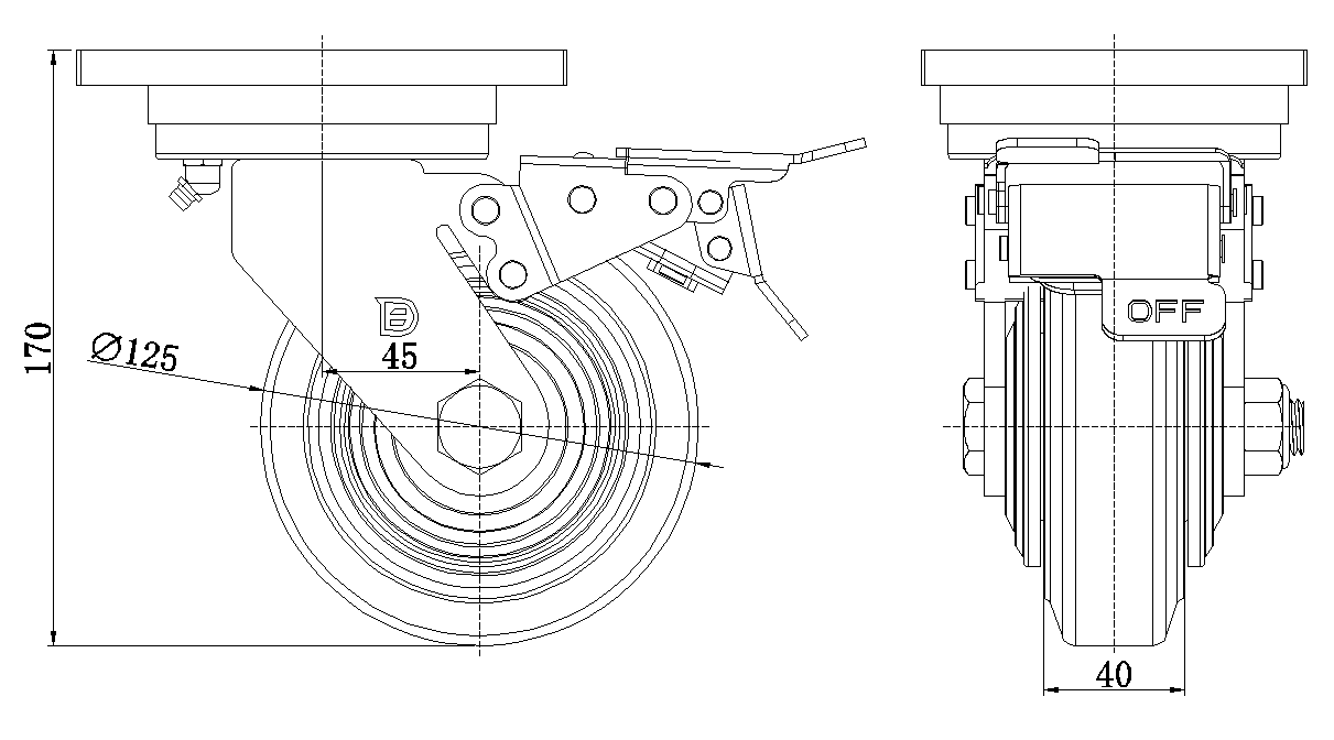 公制 英制 轮径 125mm 轮宽 40mm |