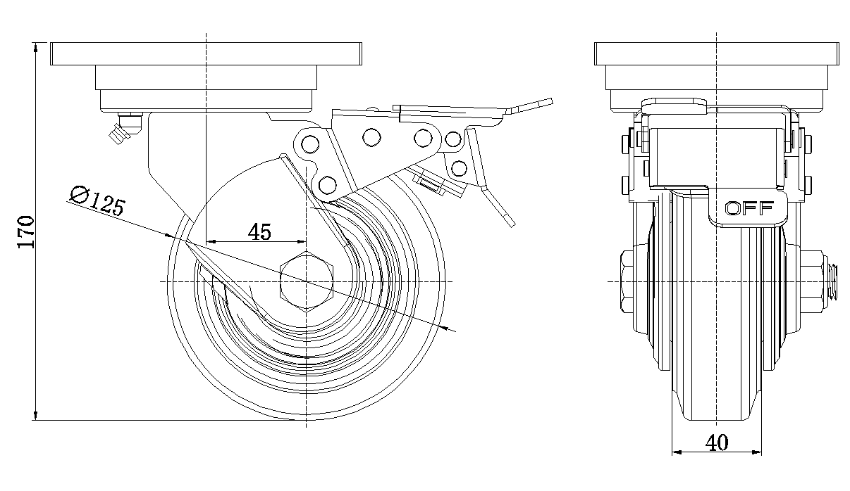 | 牵引NBR轮(铣原)轮径×轮宽 125 x 40mm |