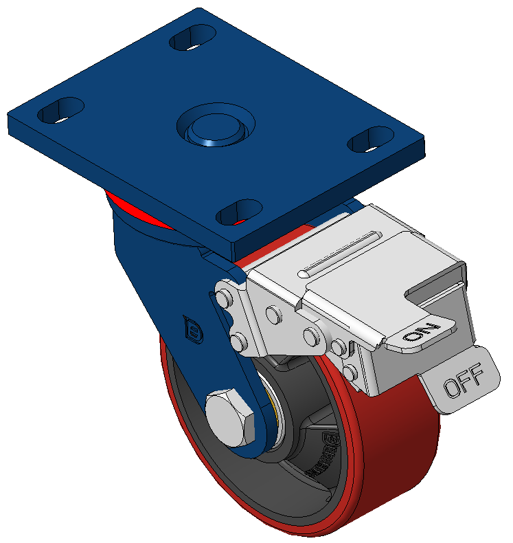 表面喷蓝漆,底板式安装装置 铸铁制轮芯,高质量聚氨酯轮面 铣红色,轮子轴承—精密滚珠。 |