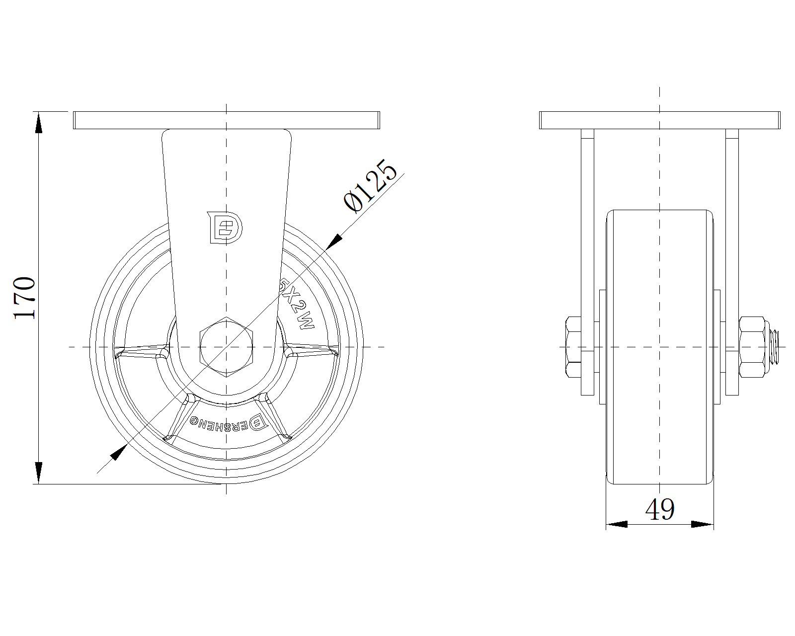 公制 英制 轮径 125mm 轮宽 49mm |