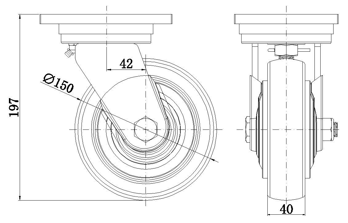 公制 英制 轮径 150mm 轮宽 40mm |
