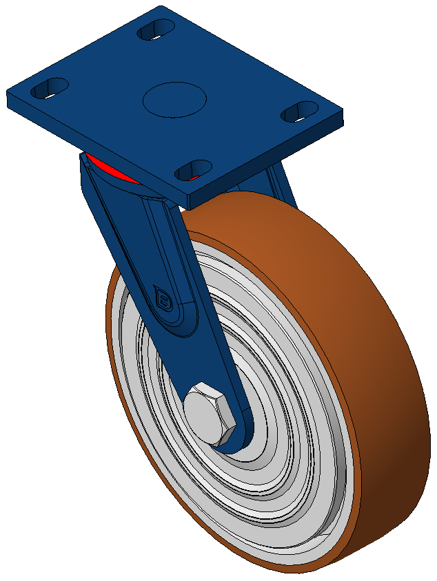 配有后煞式,锁定系统的脚轮,焊接钢板架 表面蓝漆,底板式安装装置,孔距110x75 铸铁制轮芯,高品质聚氨酯轮面,铣褐色 轮子轴承—精密滚珠,配特制防缠绕轮盖 |
