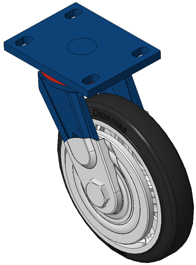 配有后煞式,锁定系统的脚轮,焊接钢板架 表面蓝漆,底板式安装装置,孔距110x75 铸铁制轮芯,高品质高弹性橡胶轮面,铣黑色 轮子轴承—精密滚珠 |