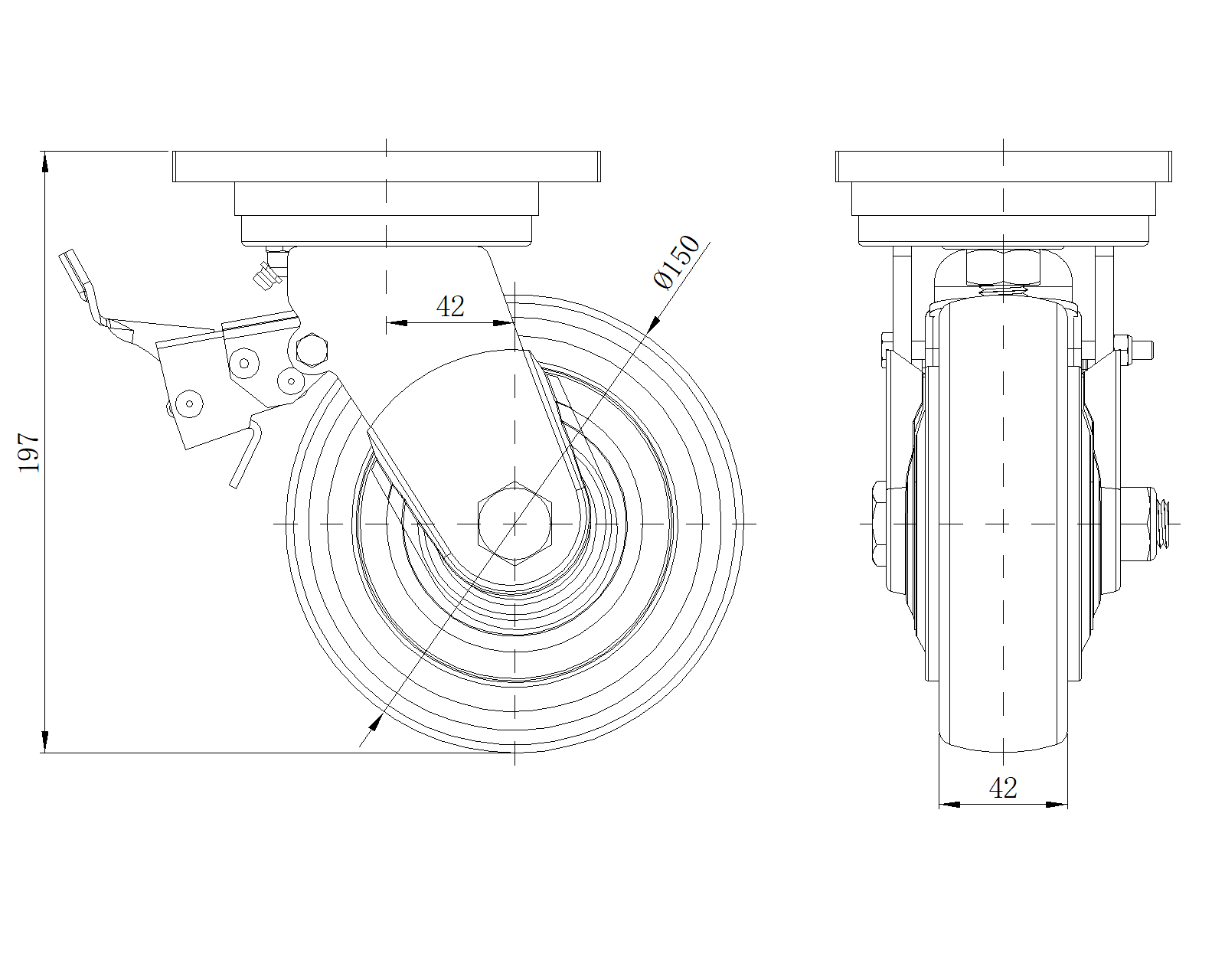 公制 英制 轮径 150mm 轮宽 42mm |