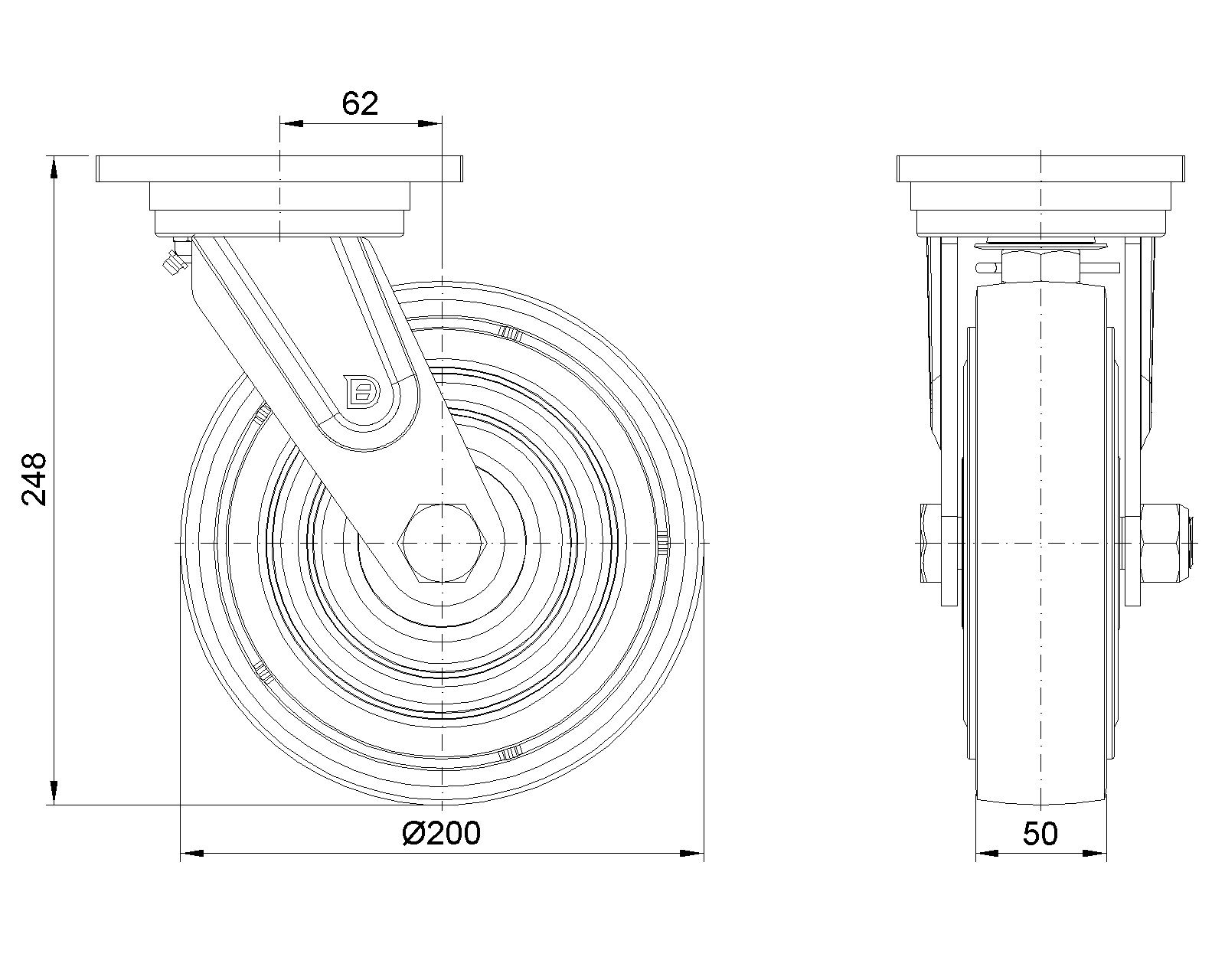 | QPU轮(褐弧)轮径×轮宽 200 x 50mm |