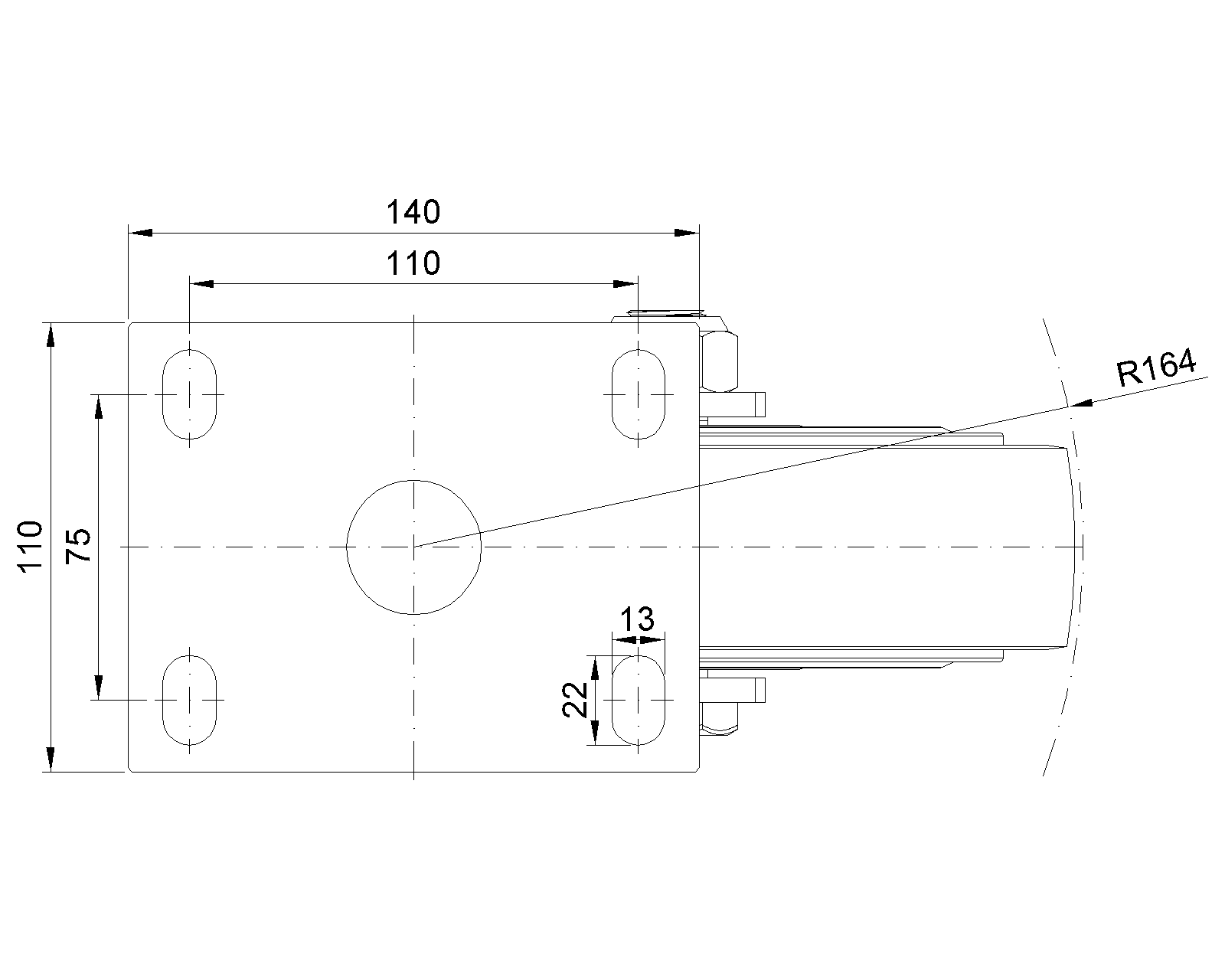 底板规格 140 x 110mm 底板孔距 110x75mm 底板孔径 22 x 13mm 偏心距 62mm 旋转干涉 328mm 总高 248mm 旋转半径 164mm 硬度 92±5° Shore A 荷重(动态) 670kgs |