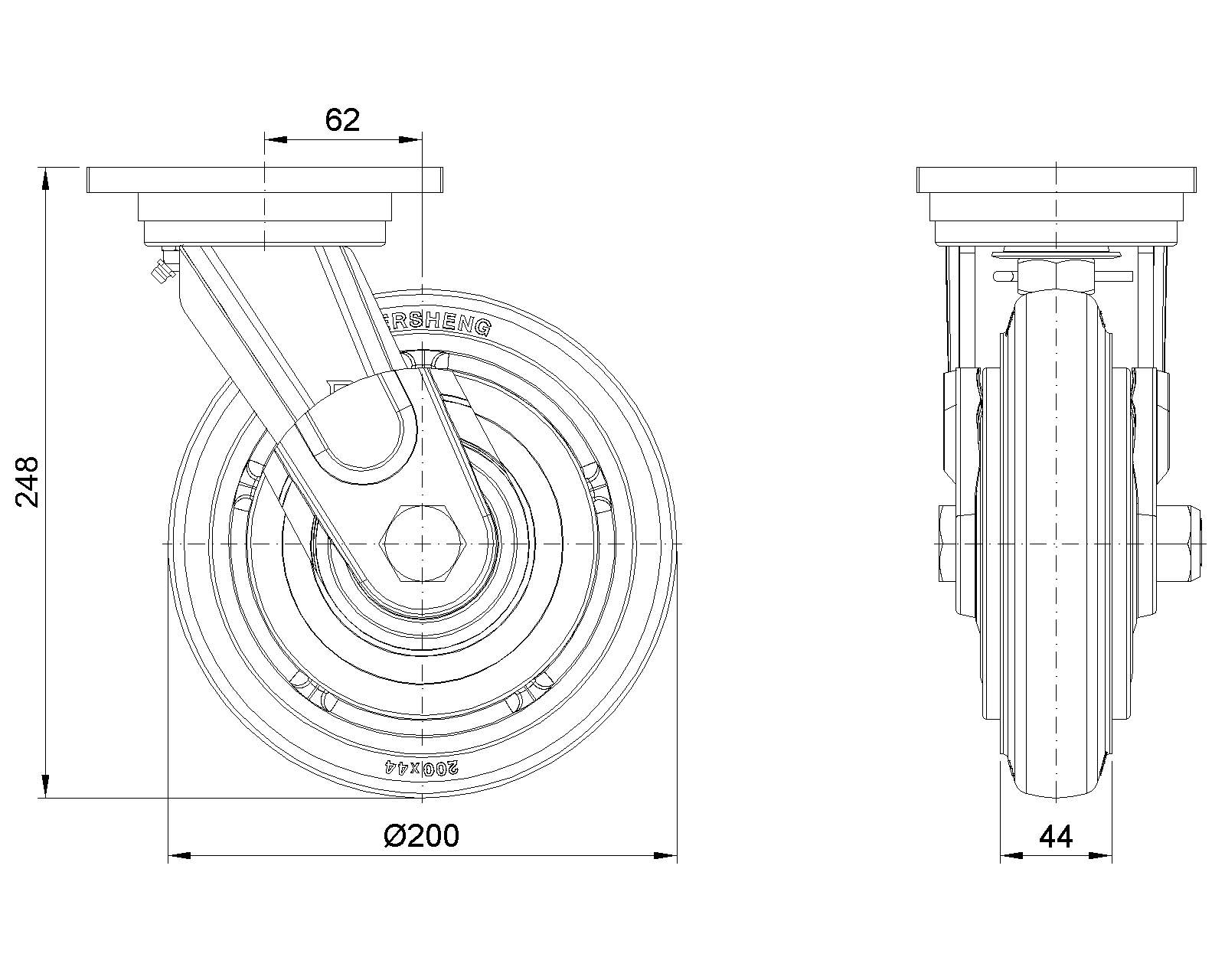 | NBR轮(铣黑)轮径×轮宽 200 x 44mm |