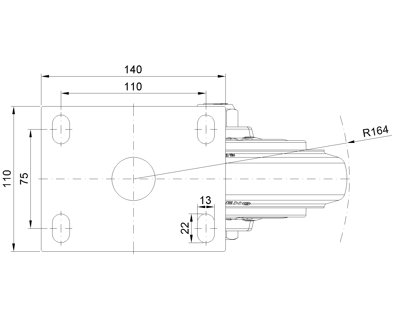 底板规格 140 x 110mm 底板孔距 110x75mm 底板孔径 22 x 13mm 偏心距 62mm 旋转干涉 328mm 总高 248mm 旋转半径 164mm 硬度 85±5° Shore A 荷重(动态) 350kgs |