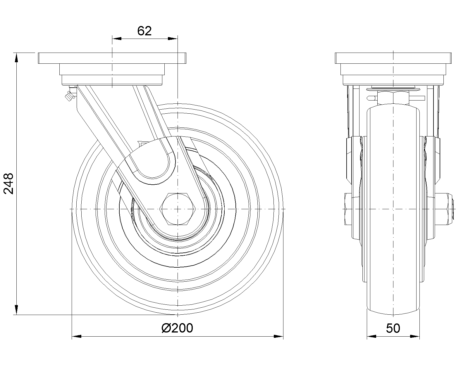 底板规格 140 x 110mm 底板孔距 110x75mm 底板孔径 22 x 13mm 偏心距 62mm 旋转干涉 328mm 总高 248mm 旋转半径 164mm 硬度 92±5° Shore A 荷重(动态) 800kgs |