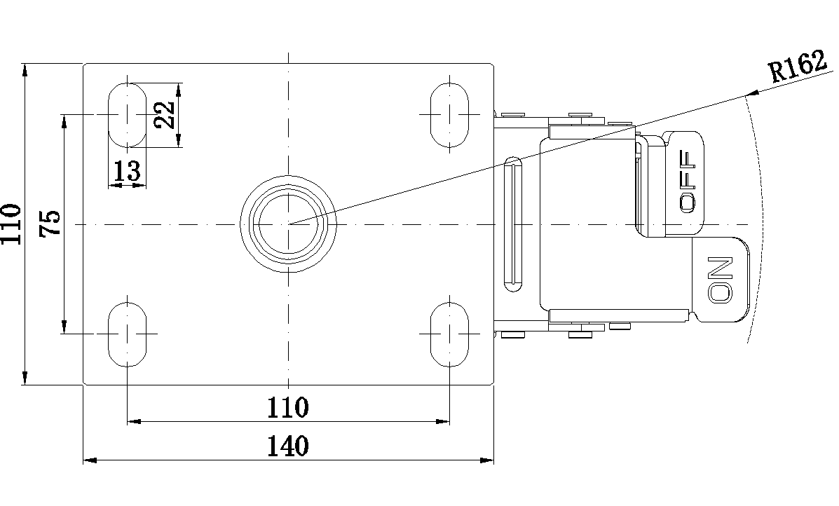 底板规格 140 x 110mm 底板孔距 110x75mm 底板孔径 22 x 13mm 偏心距 42mm 旋转干涉 324mm 总高 197mm 旋转半径 162mm 硬度 93±5° Shore A 荷重(动态) 410kgs |