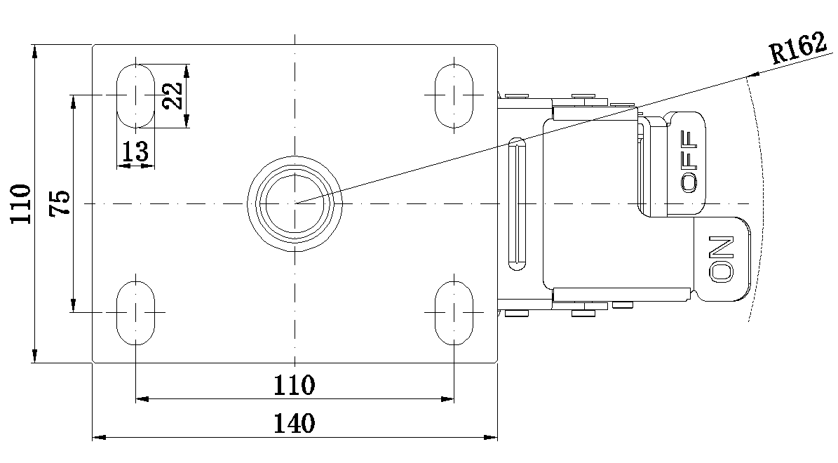 底板规格 140 x 110mm 底板孔距 110x75mm 底板孔径 22 x 13mm 偏心距 42mm 旋转干涉 324mm 总高 197mm 旋转半径 162mm 硬度 93±5° Shore A 荷重(动态) 410kgs |
