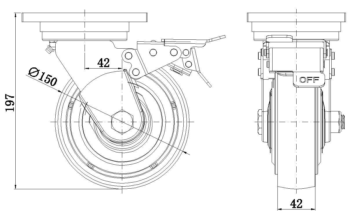 | PU轮(红弧)轮径×轮宽 150x 42mm |
