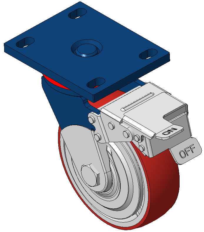 表面喷蓝漆,底板式安装装置,孔距110x75 铸铁制轮芯,高质量聚氨酯轮面,铣红色 轮子轴承—精密滚珠,配特制防缠绕轮盖 |
