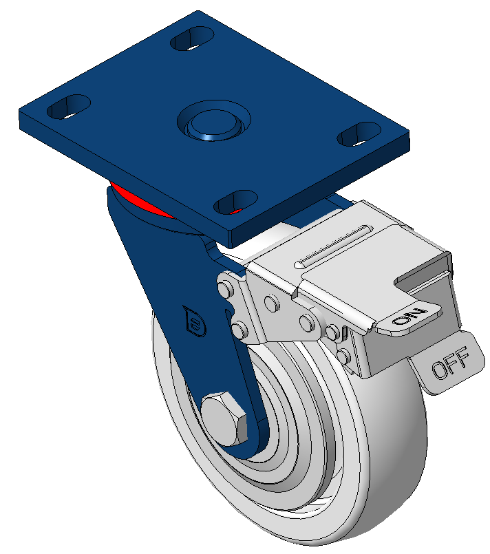 表面喷蓝漆,底板式安装装置,孔距110x75 聚丙烯轮芯、轮面,本色 轮子轴承—精密滚珠 |