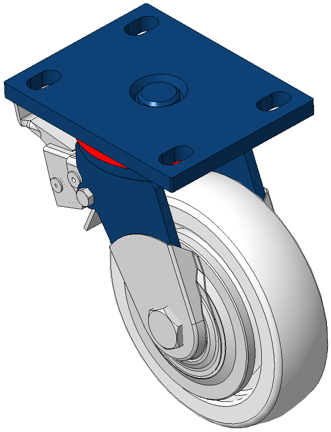 表面喷蓝漆,底板式安装装置,孔距110x75 聚丙烯轮芯、轮面,本色 轮子轴承—精密滚珠,配特制防缠绕轮盖 |