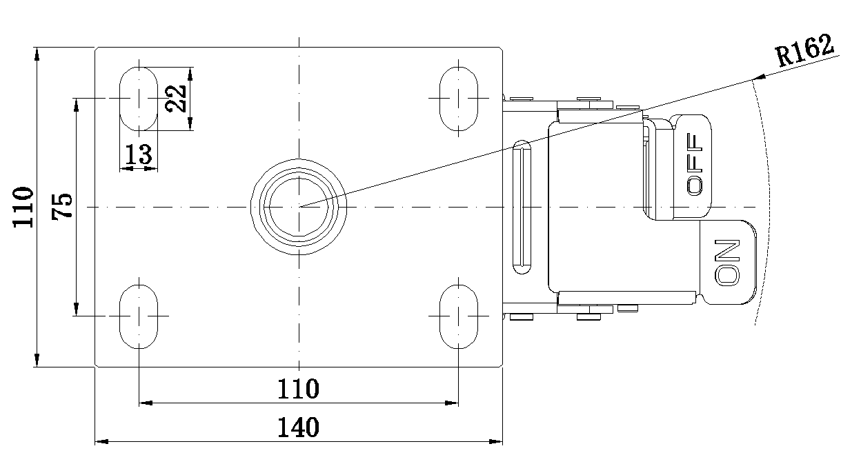 底板规格 140 x 110mm 底板孔距 110x75mm 底板孔径 22 x 13mm 偏心距 42mm 旋转干涉 324mm 总高 197mm 旋转半径 162mm 硬度 92±5° Shore A 荷重(动态) 600kgs |
