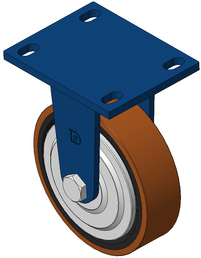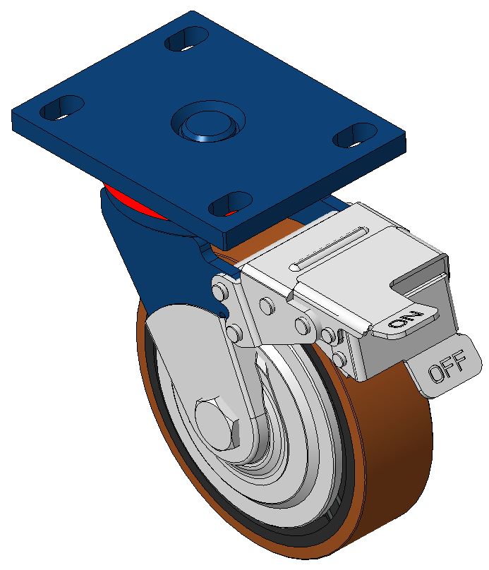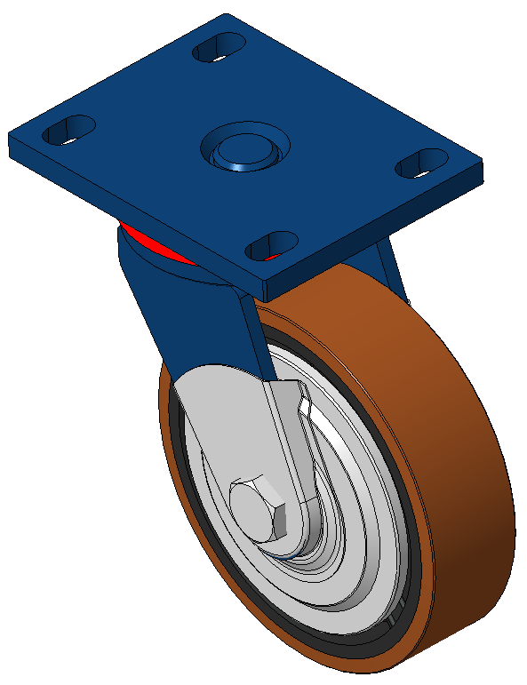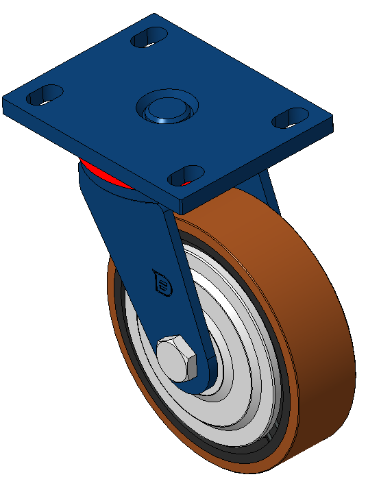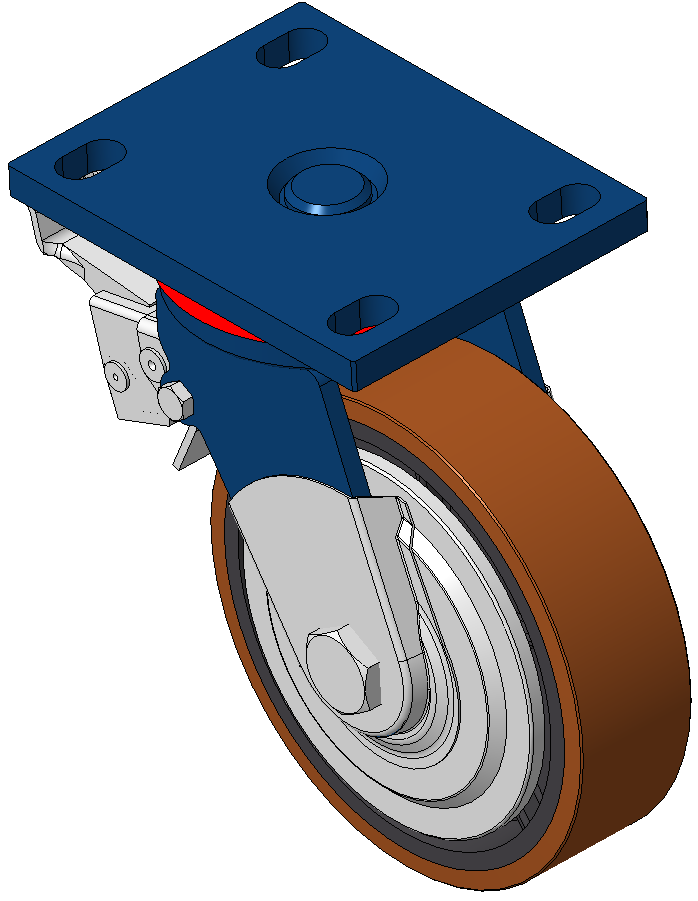 表面喷蓝漆,底板式安装装置,孔距110x75 铸铁制轮芯,高质量聚氨酯轮面,铣褐色 轮子轴承—精密滚珠,配特制防缠绕轮盖 |