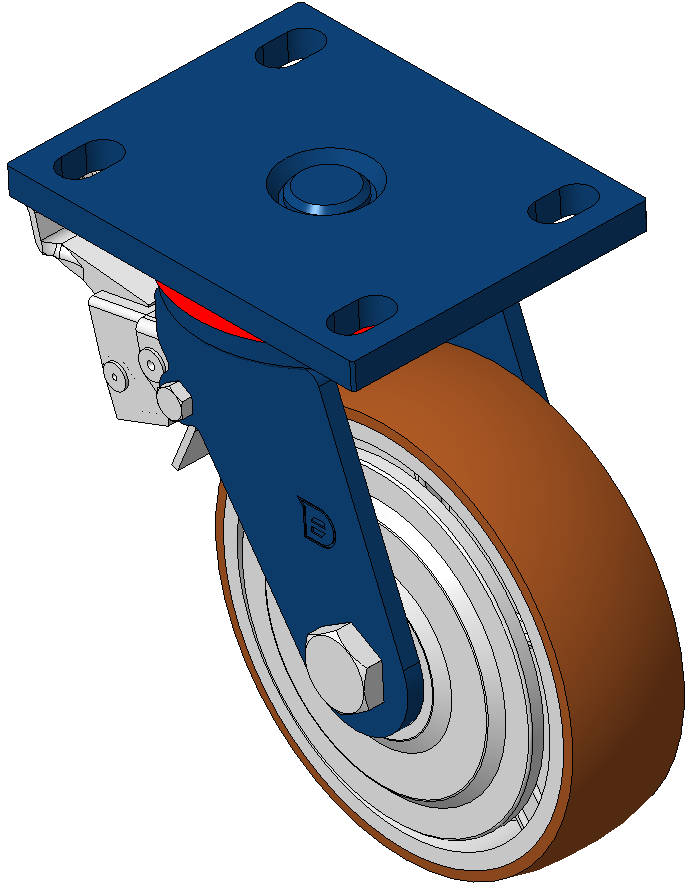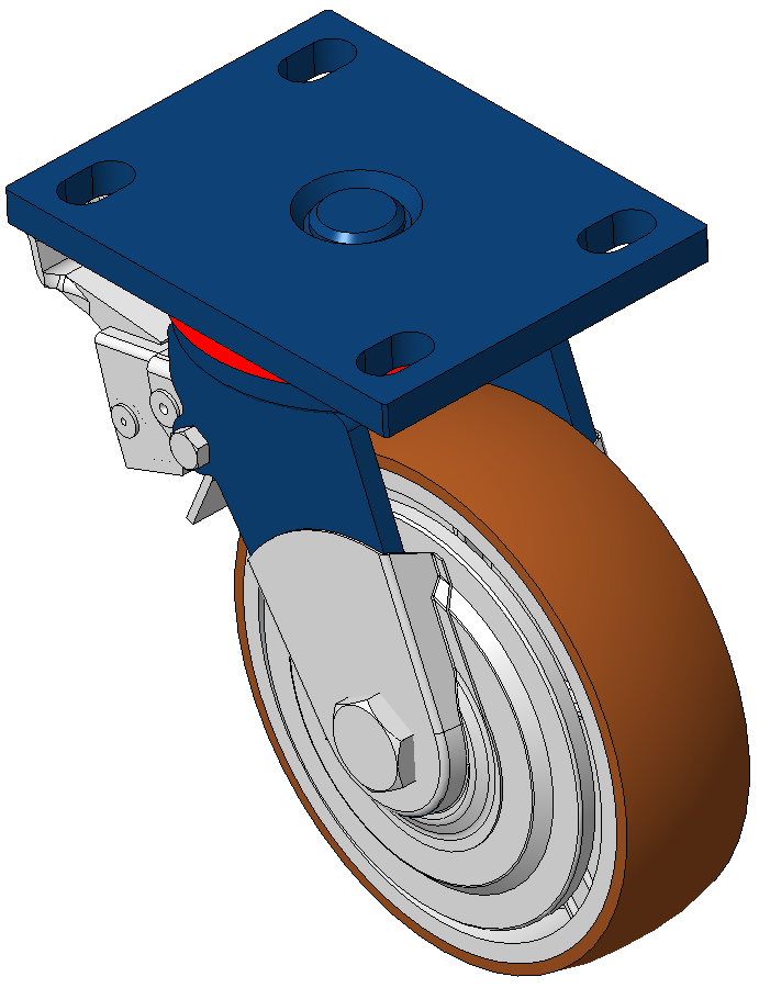 表面喷蓝漆,底板式安装装置,孔距110x75 铸铁制轮芯,高质量聚氨酯轮面,铣褐色 轮子轴承—精密滚珠,配特制防缠绕轮盖 |