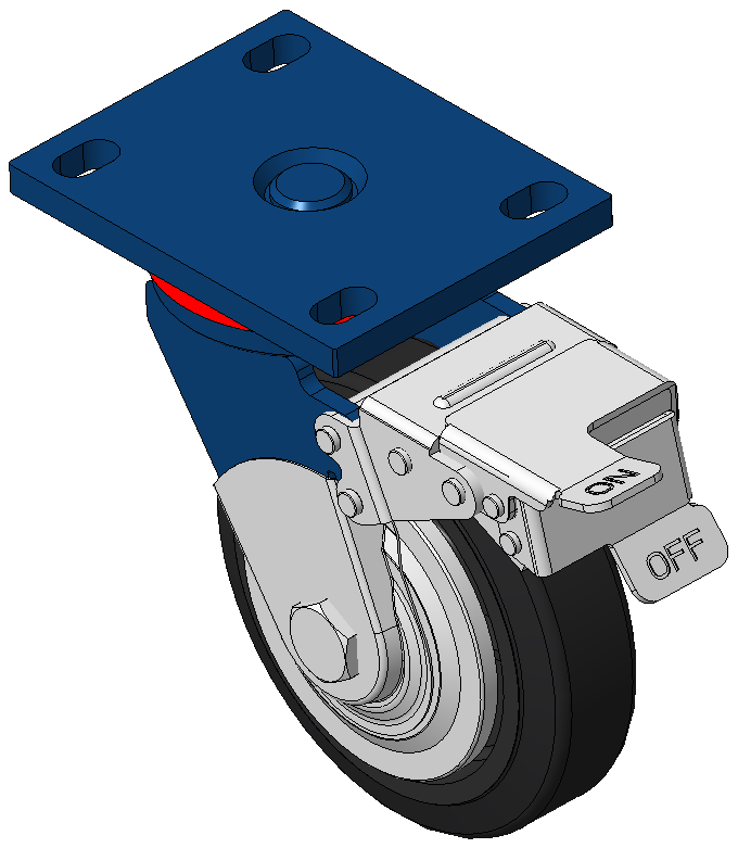 表面喷蓝漆,底板式安装装置,孔距110x75 铸铁制轮芯,高品质高弹性橡胶轮面,铣黑色 轮子轴承—精密滚珠,配特制防缠绕轮盖 |