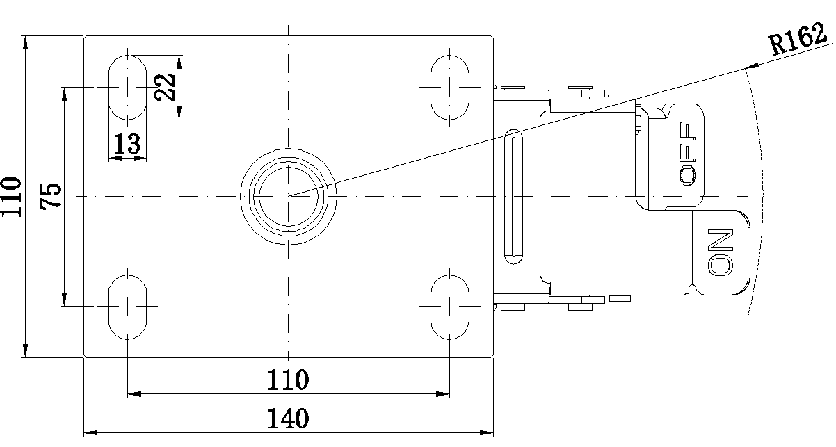 底板规格 140 x 110mm 底板孔距 110x75mm 底板孔径 22 x 13mm 偏心距 42mm 旋转干涉 324mm 总高 197mm 旋转半径 162mm 硬度 85±5° Shore A 荷重(动态) 300kgs |