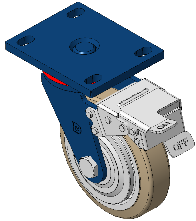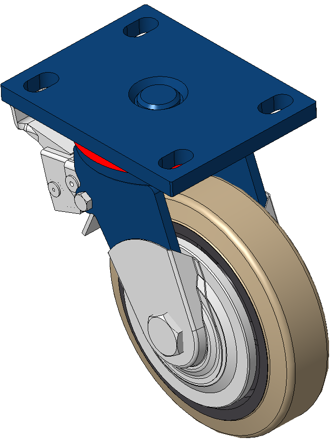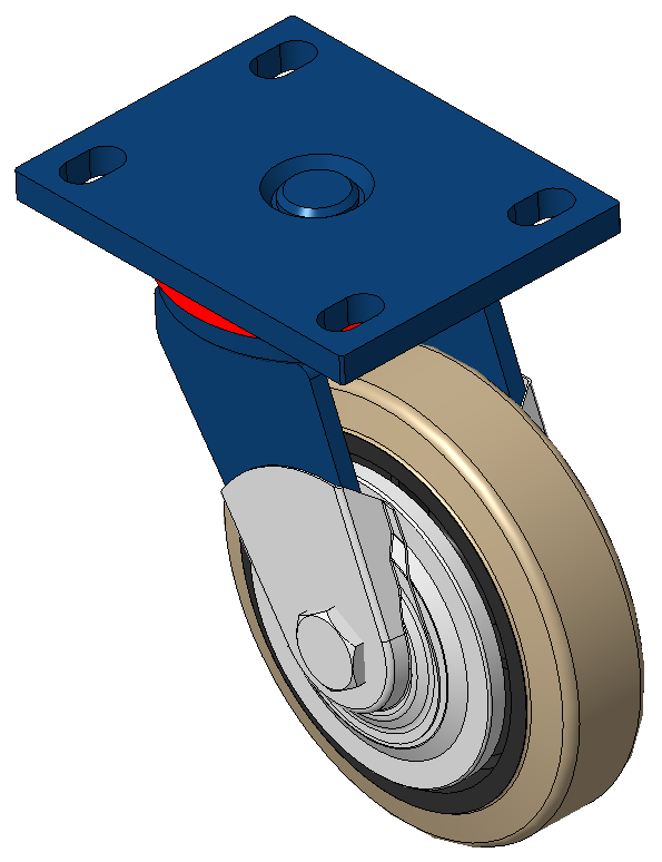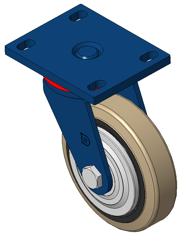 表面喷蓝漆,底板式安装装置,孔距110x75 铸铁制轮芯,高品质高弹性橡胶轮面,铣原色 轮子轴承—精密滚珠 |