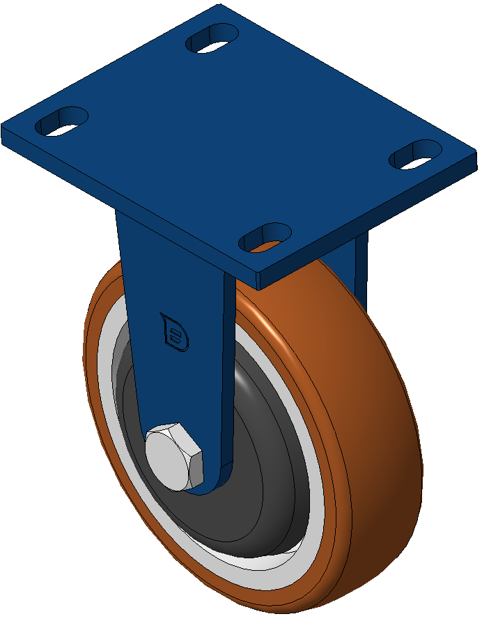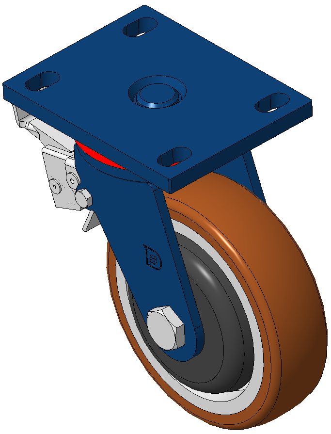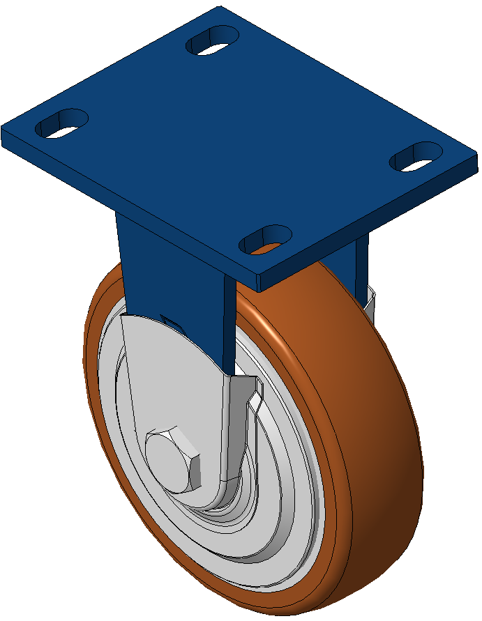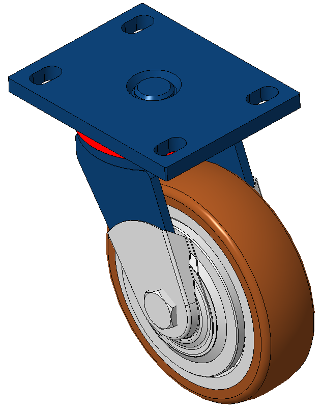 表面喷蓝漆,底板式安装装置,孔距110x75 铸铁制轮芯,高质量聚氨酯轮面,铣褐色 轮子轴承—精密滚珠 |