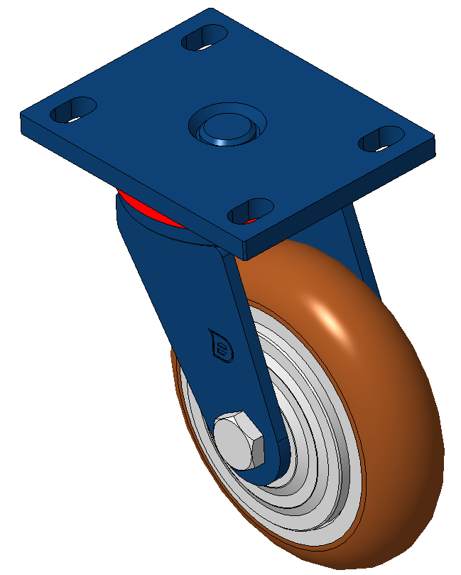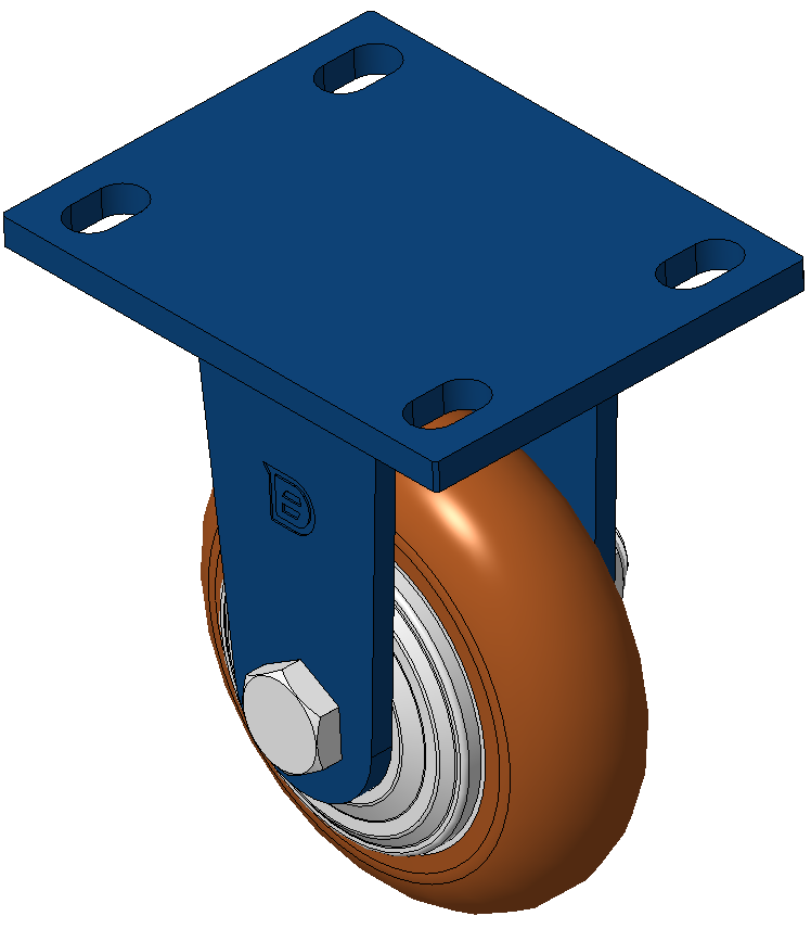 表面喷蓝漆,底板式安装装置,孔距110x75 铸铁制轮芯,高质量聚氨酯轮面,铣褐色 轮子轴承—精密滚珠 |