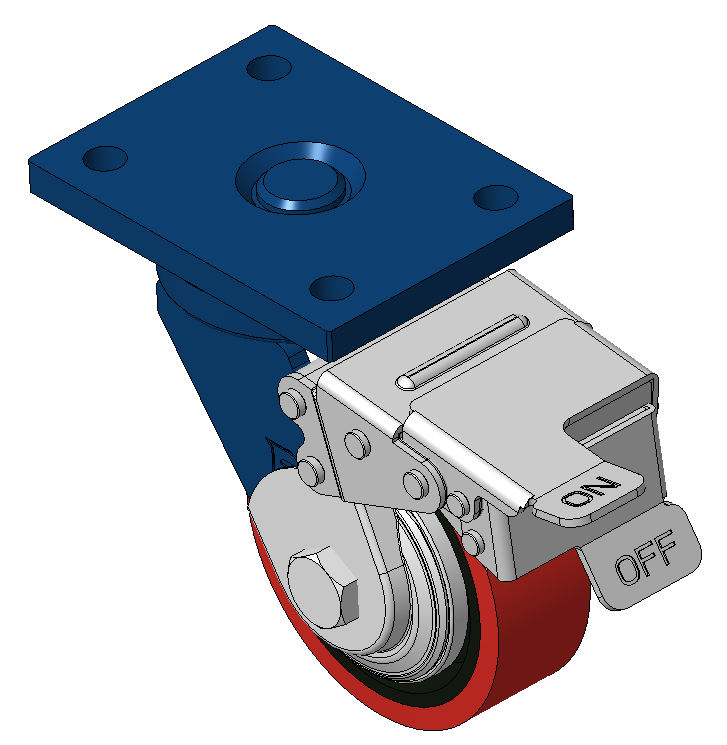 Blue painted finish, Mounting Type - Top Plate Cast Iron core, High Quality Polyurethane Wheel Tread Red Cast Iron finish, Bearing - Ball Bearings |
