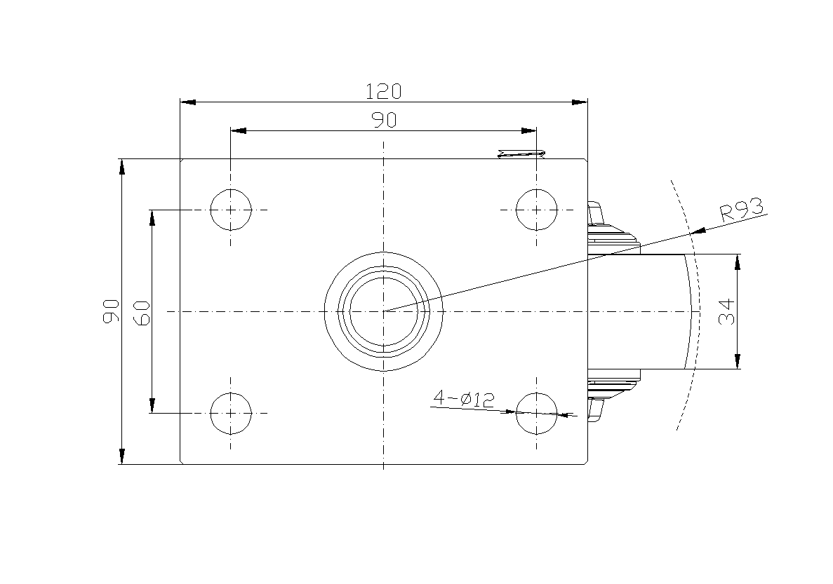 Swivel Caster, Welded Caster Fork - 90x60 Bolt Hole Spacing