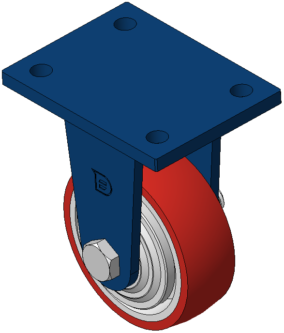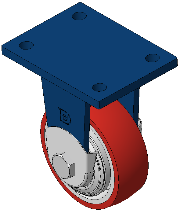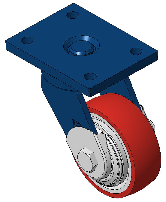 Blue painted finish, Mounting Type - Top Plate Cast Iron core, High Quality Polyurethane Wheel Tread, Cast Iron red Bearing - Ball Bearing, with special anti-wrap wheel cover |