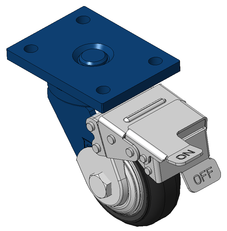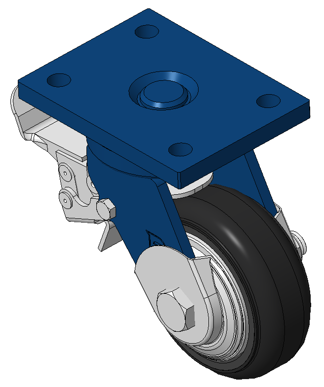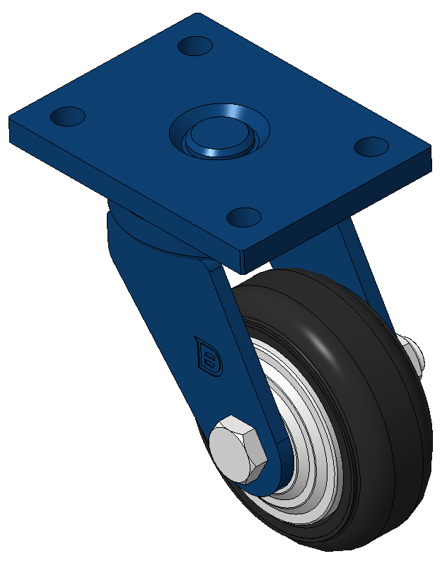 Blue painted finish, Mounting Type - Top Plate Cast Iron core, High-Quality, highly Resilient Rubber Wheel Tread Cast Iron black, Bearing - Ball Bearing |