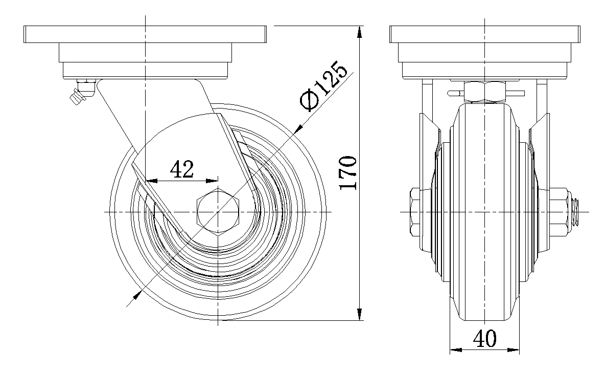 Wheel surface: Made of high-quality, highly elastic rubber Wheel Center: iron core/cast iron core Drawings are for reference only and may differ from the product |