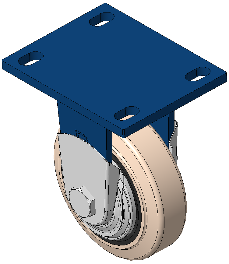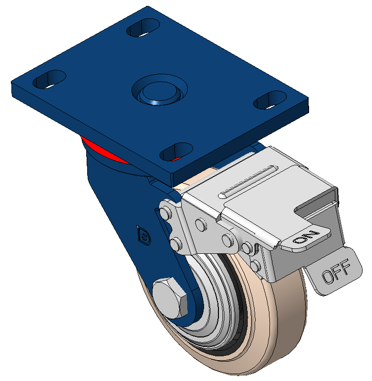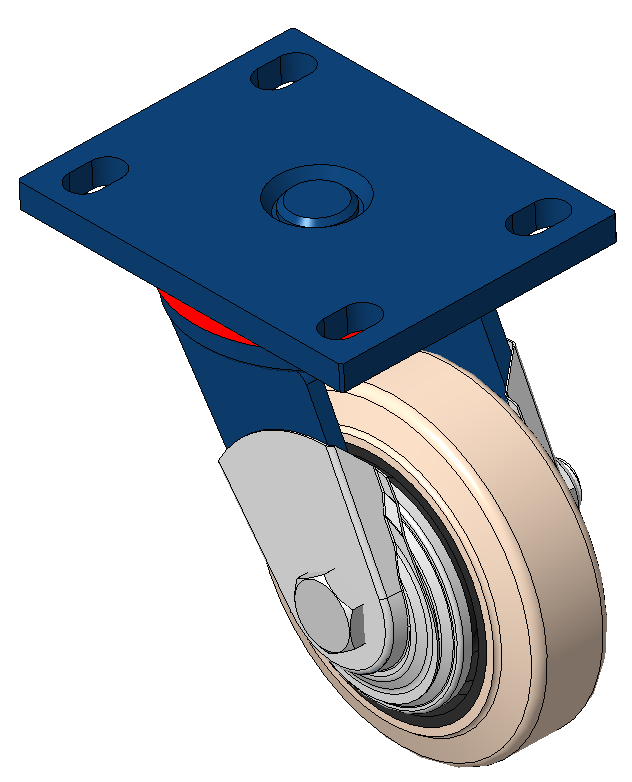Blue-painted finish, Mounting Type - Top Plate Cast Iron core, High-Quality, highly Resilient Rubber Wheel Tread, Cast Iron in natural color Bearing - Ball Bearing, with special anti-wrap wheel cover |