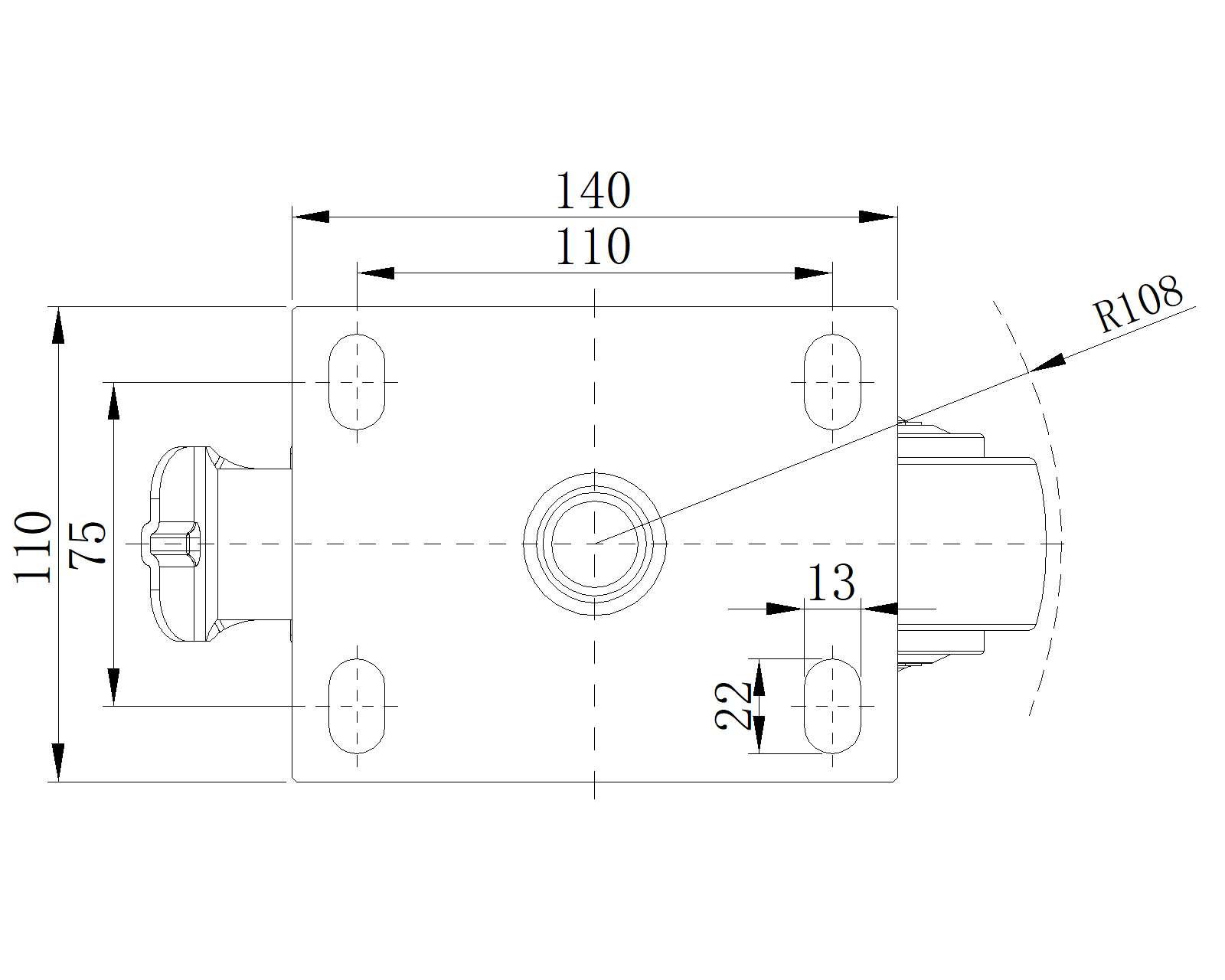Blue-painted finish, Mounting Type - Top Plate, 110x75 Bolt Hole Spacing Polypropylene Wheel Center and Wheel Tread, natural color Bearings—Ball Bearings with special Anti-thread wheel cover |