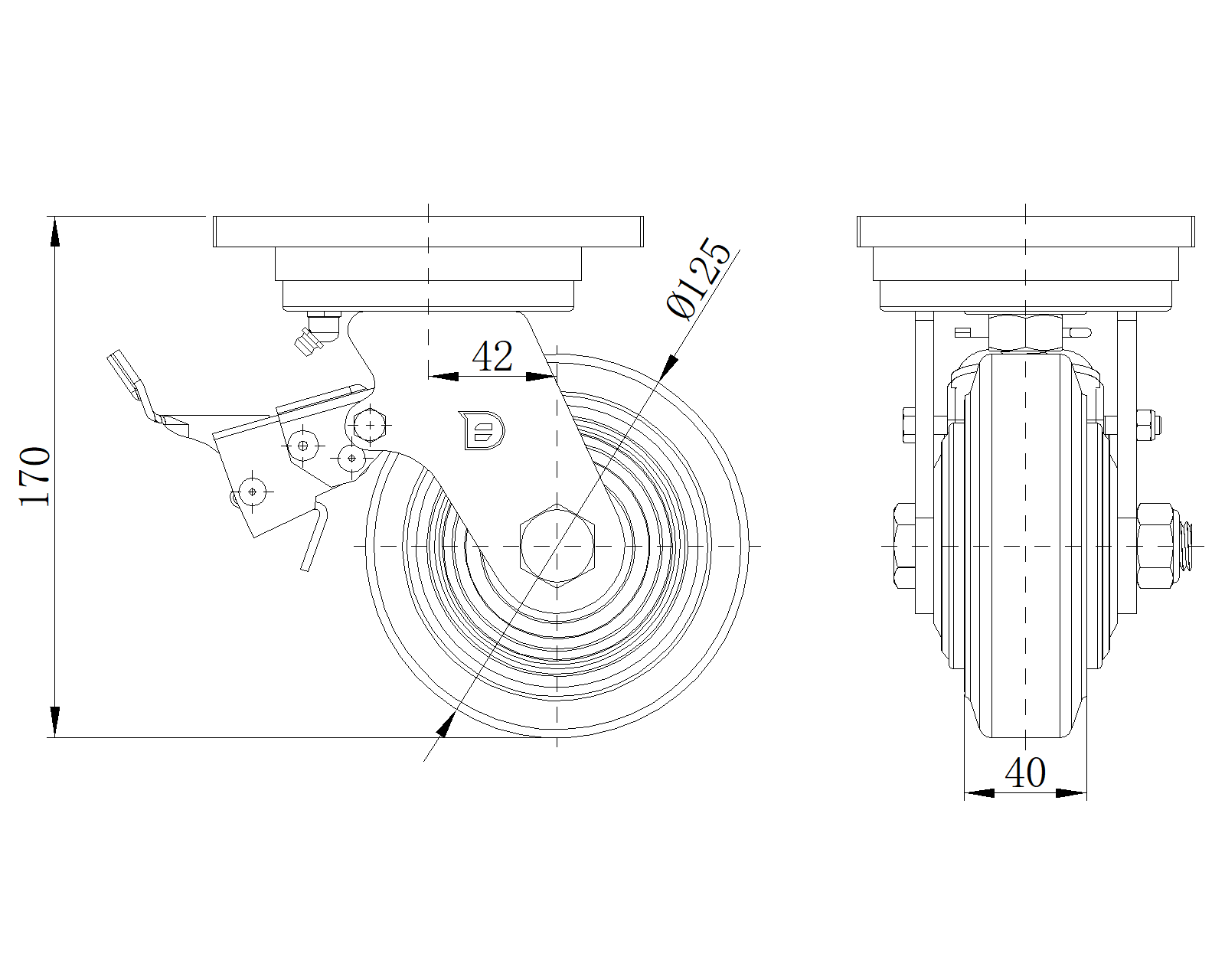 NBR (milling black) Wheel Diameter x Wheel Width 125 x 40mm |