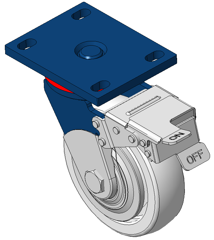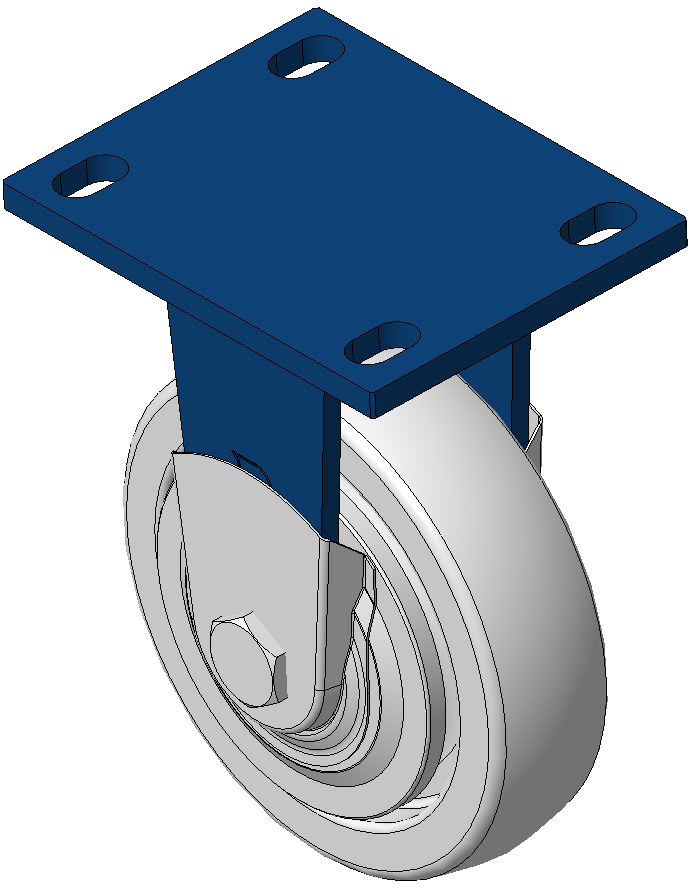 Rigid Caster, Welded Caster Fork - 110x75 Bolt Hole Spacing Blue-painted finish, Mounting Type - Top Plate, with special anti-tangle wheel cover Polypropylene Wheel Center and tread Natural color, Bearing - Ball Bearing |