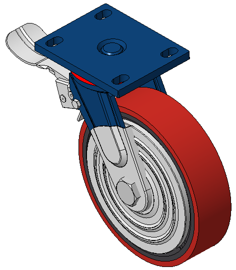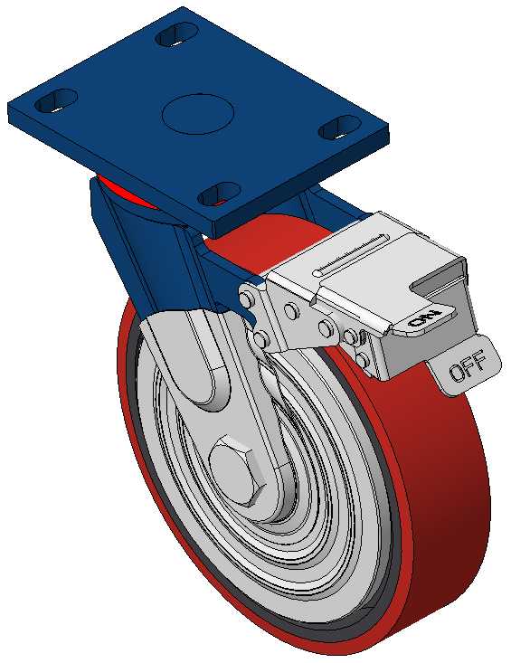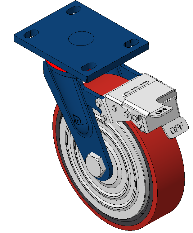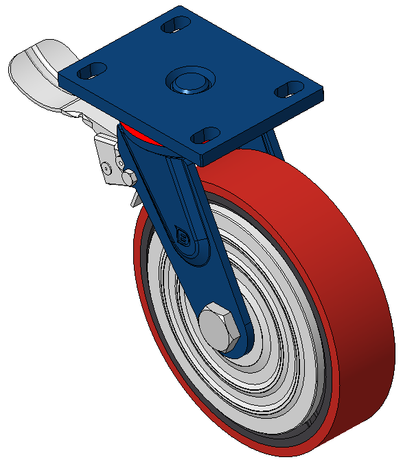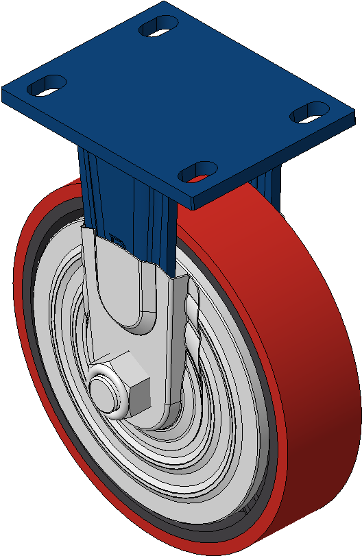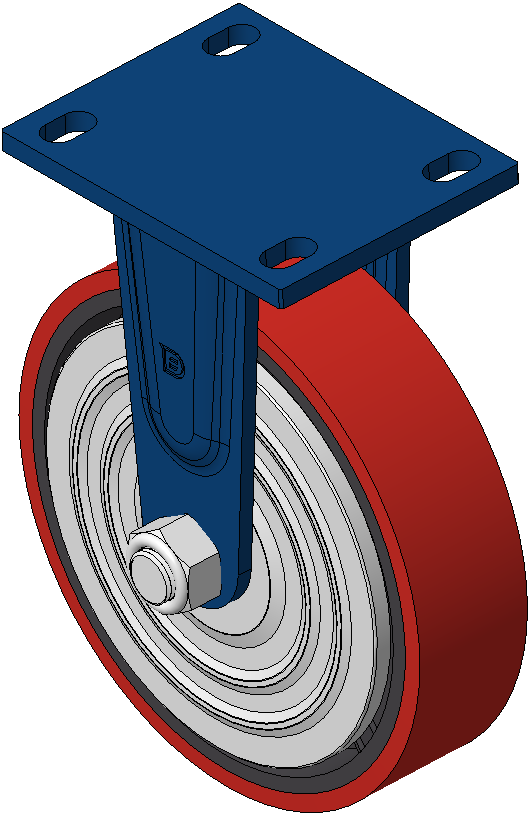 Rigid Caster with Welded Caster Fork Blue painted finish, Mounting Type - Top Plate, 110x75 Bolt Hole Spacing Cast Iron core with High Quality Polyurethane Wheel Tread, Cast Iron red Bearings – Ball Bearings |