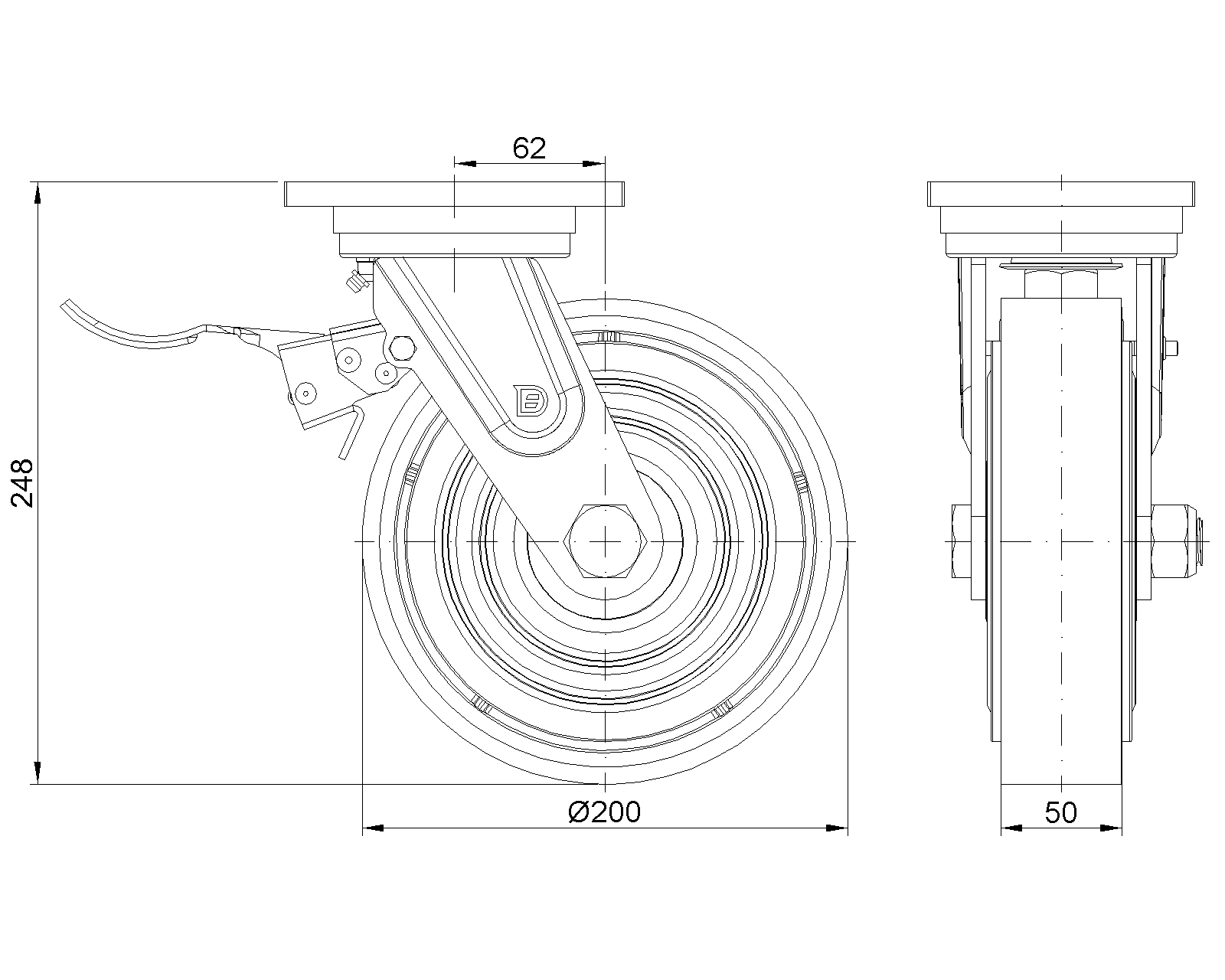 PU (red flat) Wheel Diameter x Wheel Width 200 x 50mm |