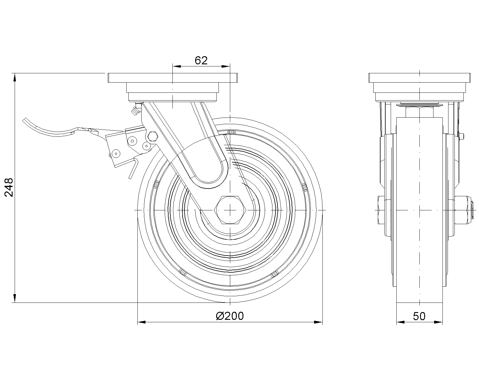 PU (red flat) Wheel Diameter x Wheel Width 200 x 50mm |