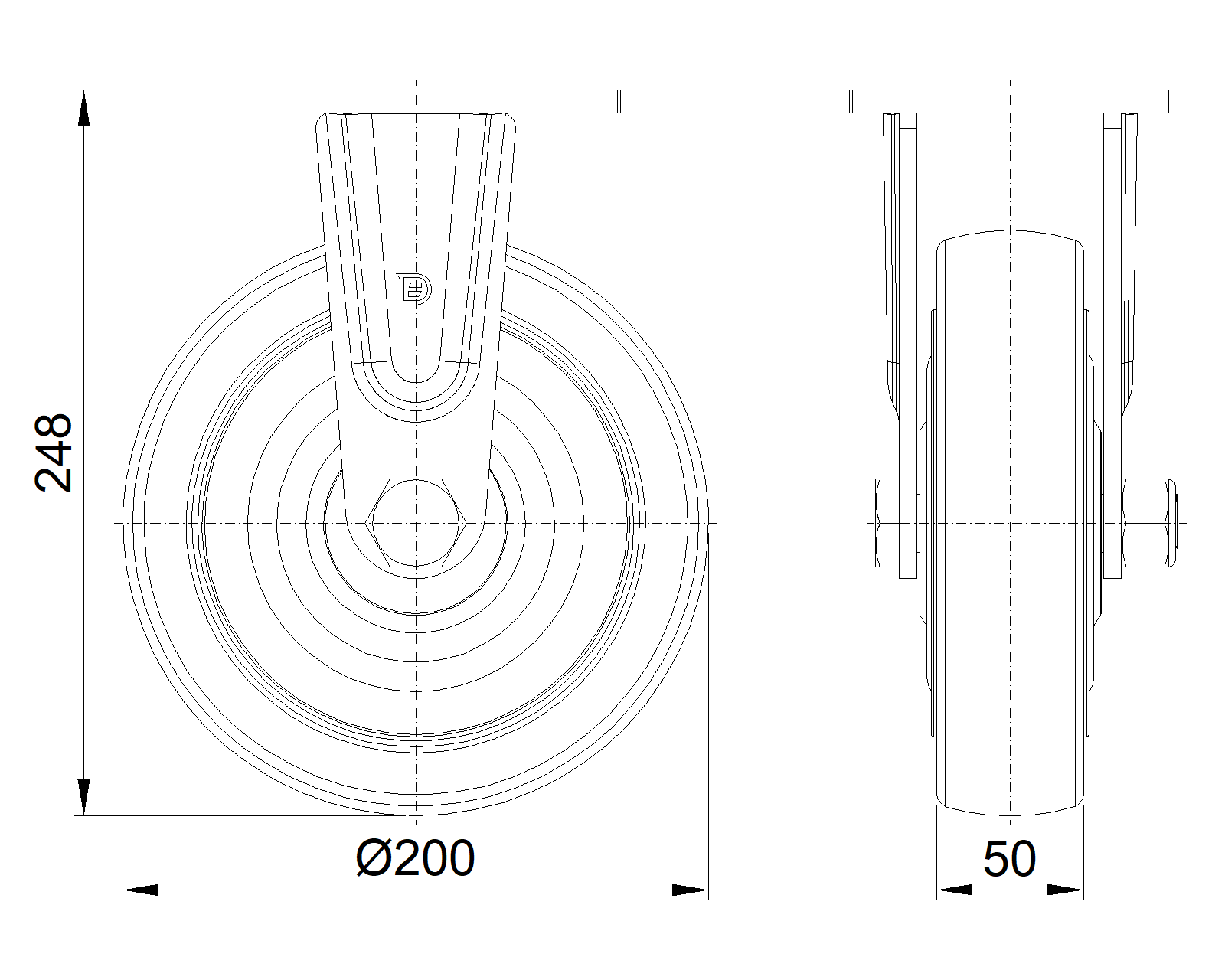 Wheel surface: PP polypropylene Wheel Center: PP polypropylene Drawings are for reference only and may differ from the product |