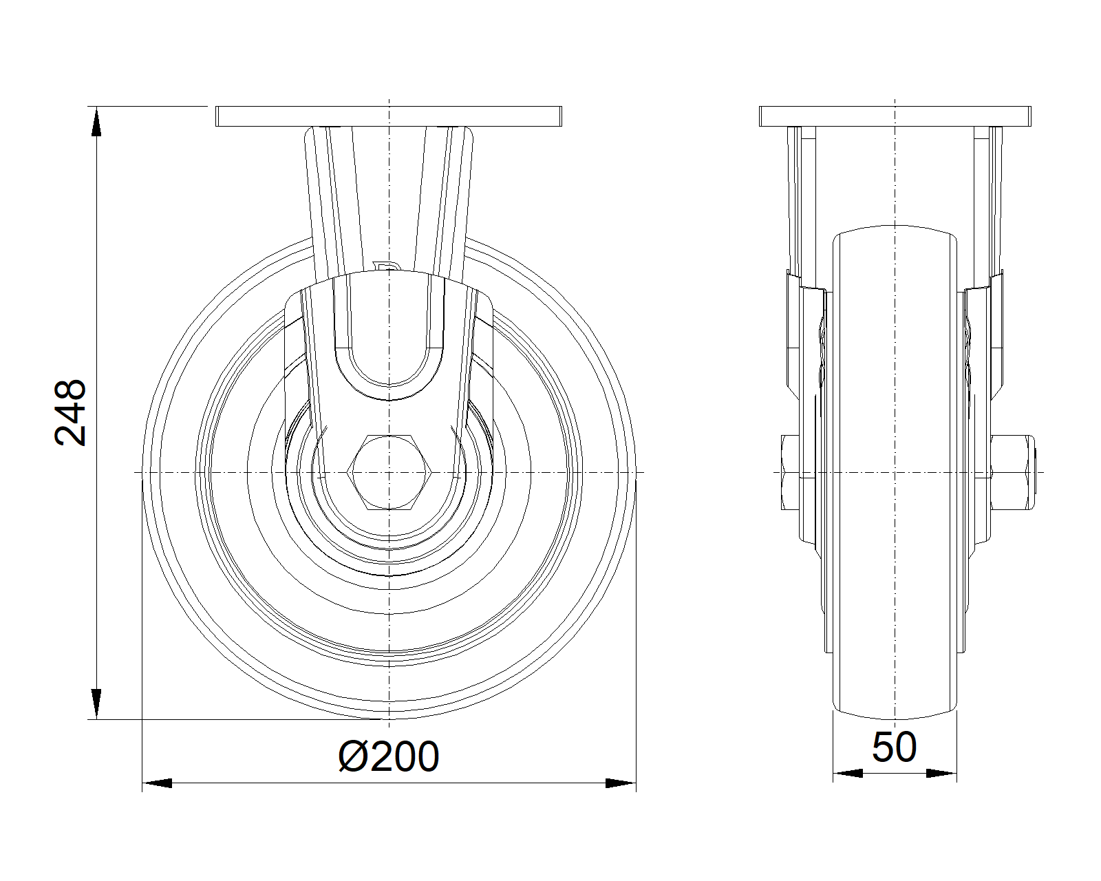 Mounting Type - Top Plate, 110x75 Bolt Hole Spacing Polypropylene Wheel Center, natural Wheel Tread Bearings—Ball Bearings with special anti-twist wheel covers |