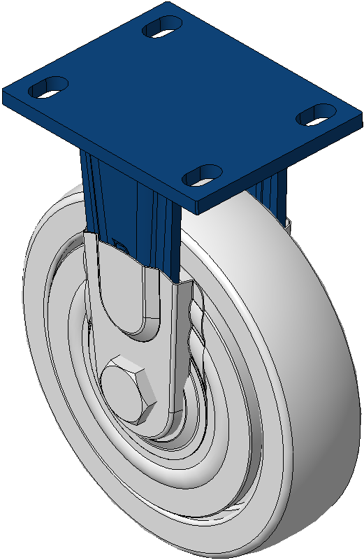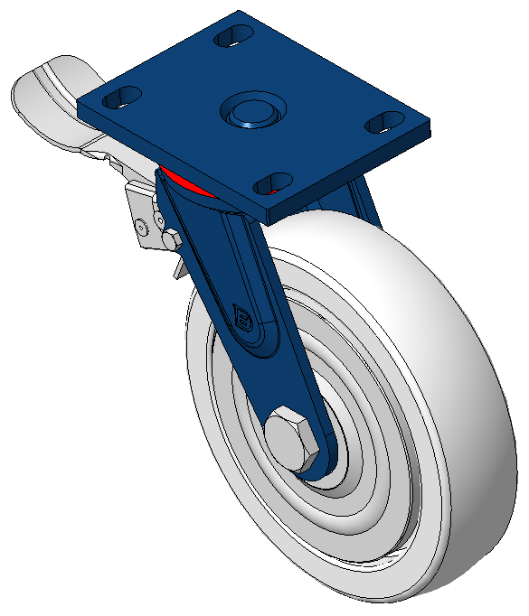 Casters with rear brake and With locking system, Welded Caster Fork Blue-painted finish, Mounting Type - Top Plate, 110x75 Bolt Hole Spacing Reinforced Polypropylene Wheel Center, natural Wheel Tread Bearings—Ball Bearings with special Anti-thread wheel cover |
